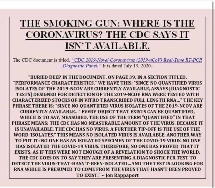 In October, the CDC admitted there’s no “Gold Standard” of the COVID-19 virus isolate.