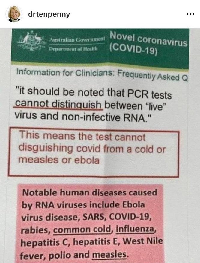 The PCR test was invented by Biochemist and Nobel Prize winner, Dr. Kary Mullis. It was never designed to be a diagnostic tool for disease or viruses. The PCR test is not able to isolate a viral infection or a living virus. The test does not differentiate between live and dead viruses.