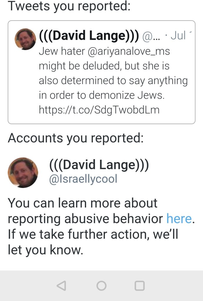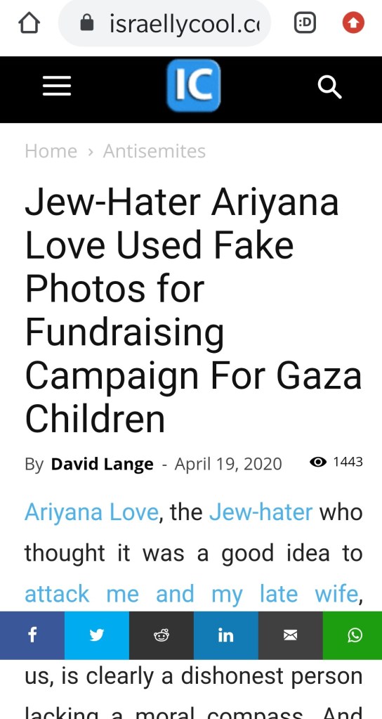 Lange and his Zionist co-workers have been cyber stalking me since 2017 and reporting my posts to get my accounts suspended. They’ve been harassing me with vehement blogs since February 2018, smearing their false accusations across the Internet in an attempt to discredit me.