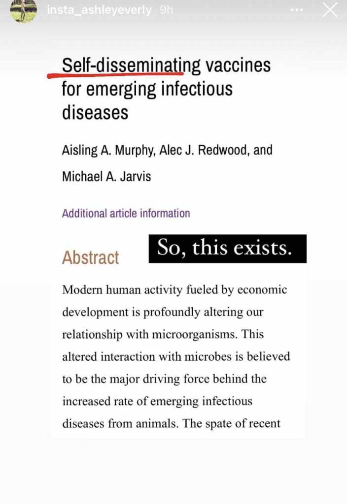 Self-disseminating vaccines for emerging infectious diseases have existed since 2016, according to this study by the US National Library of Medicine National Institutes of health Institute.