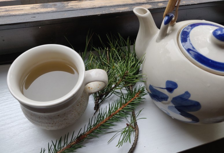 The Douglas fir needle tea I have been drinking provides an energetic lift and a nice boost to the immune system.