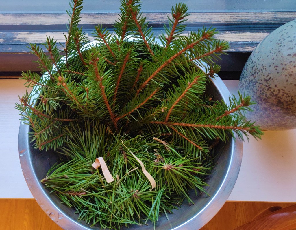 For a strong immune booster I recommend simmering Pine needles with any other combination of Fir, Cedar or Spruce. I am using a combination of half Pine and one third Spruce needles because that’s what grows in the forest next to my home.