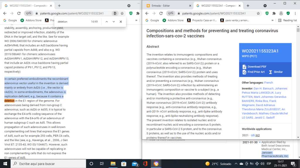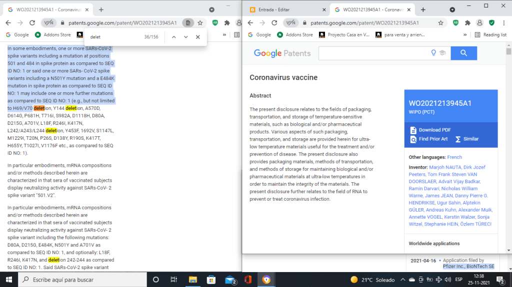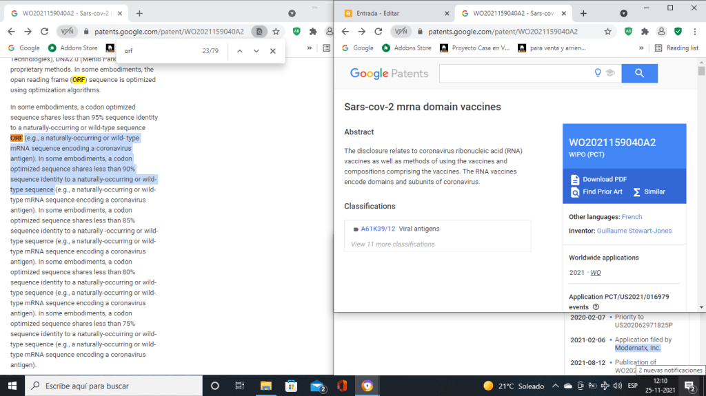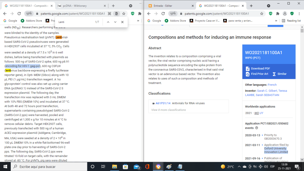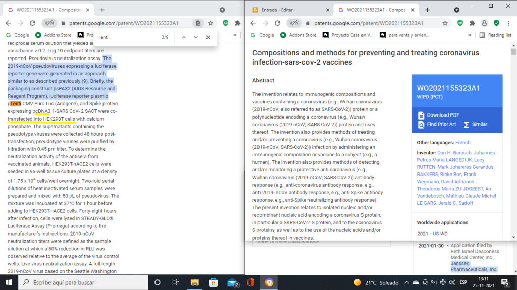 “Lentivirus shows up in a couple of patents: Modernatx, Inc., Sars-CoV-2 mRNA domain vaccines, November 4th, 2021.