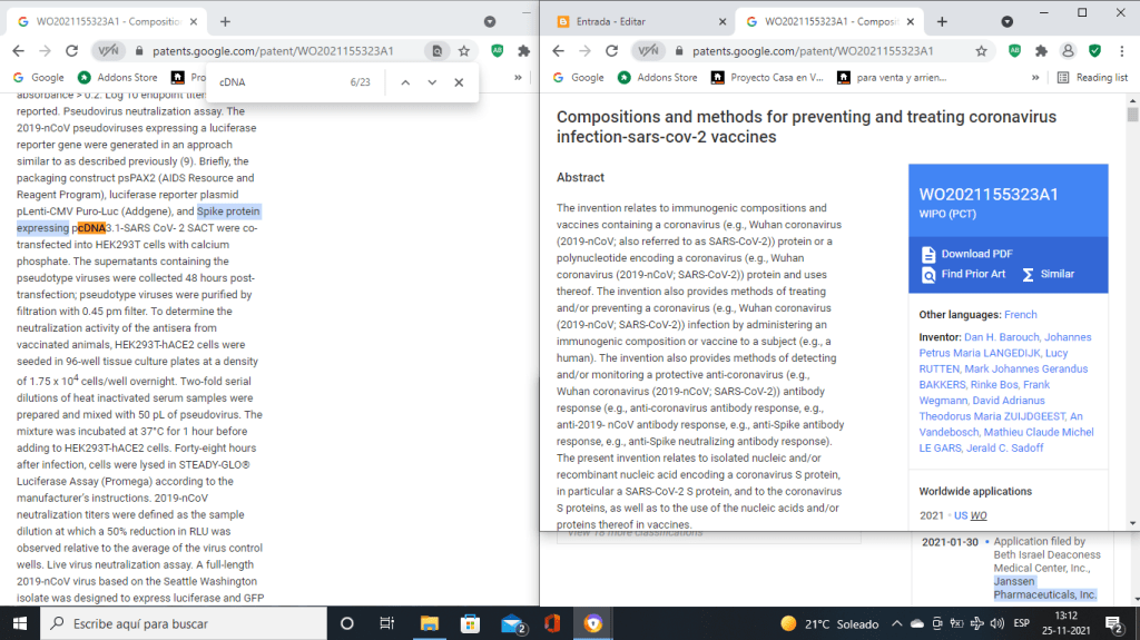 NOTE: Sometimes the patents read ambiguously and in code language. They refer to the “Spike Protein,” which is synonymous with the “Glycoprotein S”. Other times, the descriptions could be referring to RNA and DNA changes, like coding new genetic sequences using “cDNA”. They sometimes read with words “in some embodiment’s” which likely means in some vials.